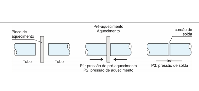 Esse processo pode ser utilizado na soldagem de Polipropileno (PPP), Polietileno (PEAD) e Fluoreto de Polivinilideno (PVDF), sendo que o procedimento parte da fusão das extremidades (Tubo X Tubo) ou (Tubo X Conexão) utilizando uma máquina específica para o procedimento, conforme exemplo abaixo: